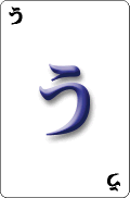なかなかバラエティに富んだカードラインナップです。 場の札は【う】ですので、【う】から始まって、これらの手札のどれかで終わる3文字以上の言葉を考えます。 「うみうし」という言葉がありますので、それで行きましょう。「うみうし」と云いながら、【し】の札をバスケットに入れます。シミュレーションですので、他の人よりも先に出せた、という事にしておいて下さい。 |